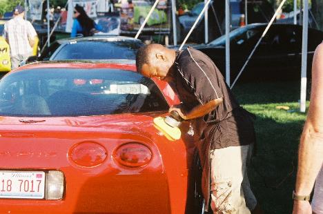 | Russell (center front) and Curtis (far right) with The Chicago Cross Roads Corvette Club |